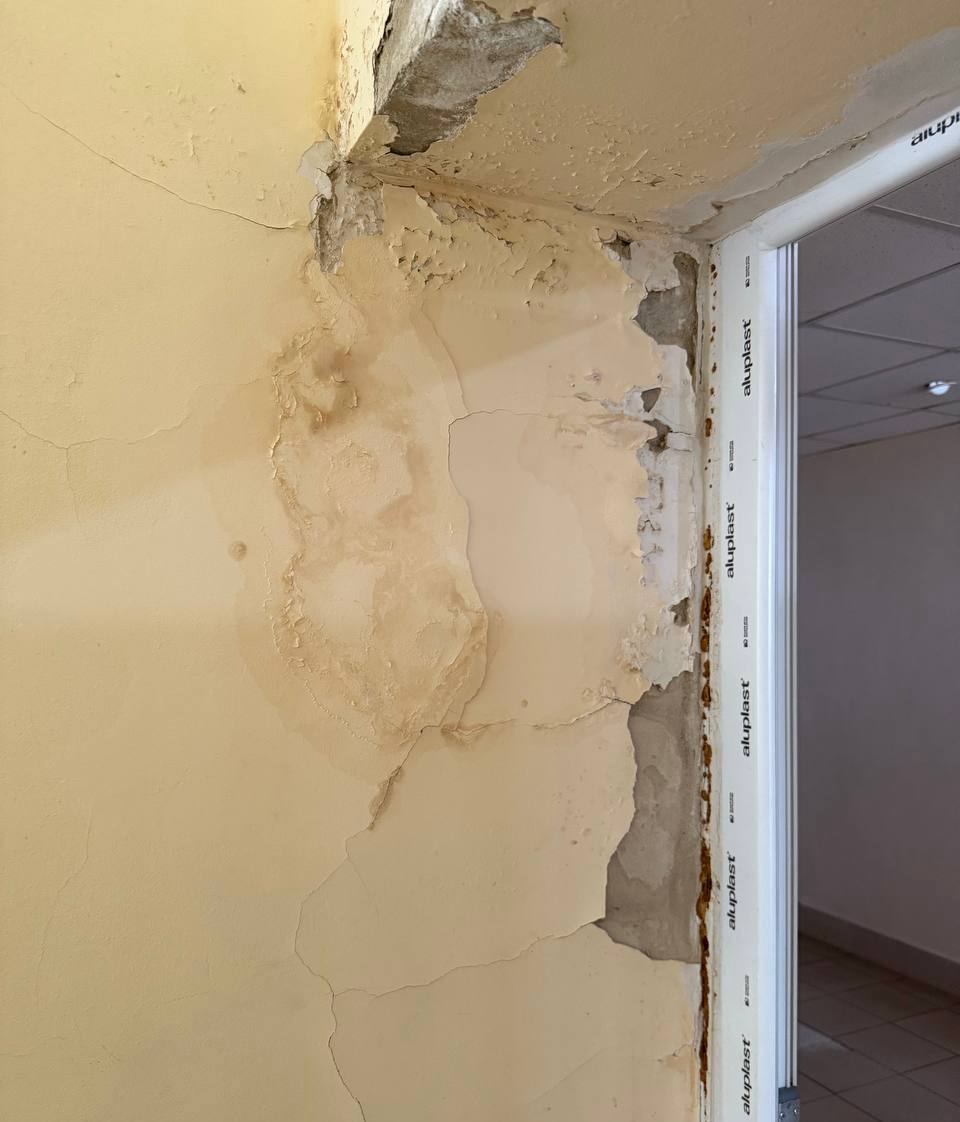 Нинішній стан відділення, зафіксований на фото, є критичним. Обдерті стіни, уражені пліснявою, застаріла електрична проводка, що несе потенційну загрозу, та відсутність вентиляції роками створювали важкі умови як для пацієнтів, так і для медичного персоналу.